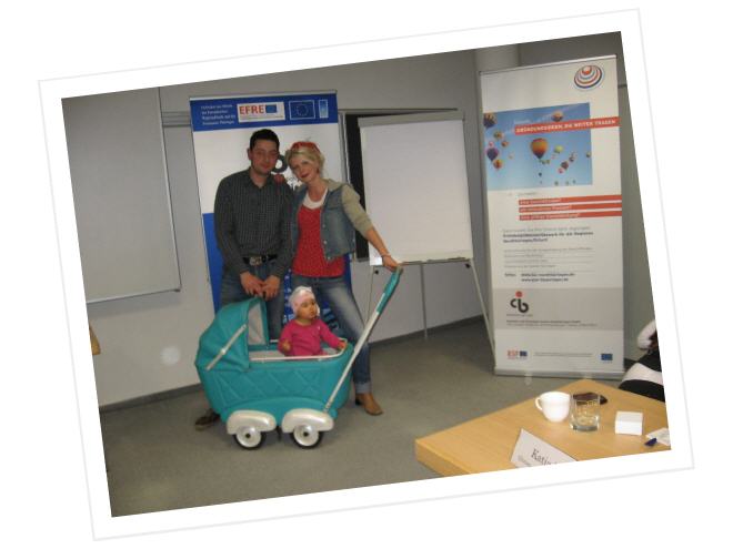 Die Fotos zeigen ein paar Eindrücke von der Vorstellung unserer Kinderwagenmanufaktur auf der Prämierungsveranstaltung des Gründungsideenwettbewerbes Nordthüringen. Mit dem Prototypen und Sina präsentierten wir die Sina Kinderwagenmanufaktur und konnten einen dritten Platz belegen. Hier geht es zum Pressebericht.