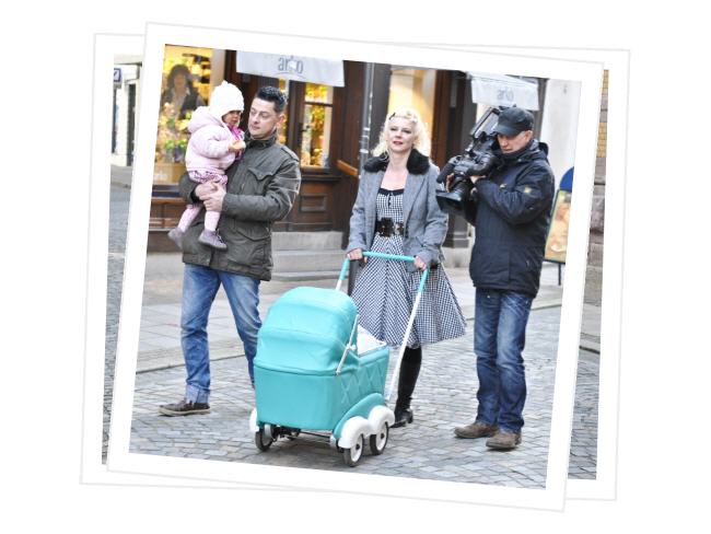 Am 26.01.2012 war ein Fernsehtermin vom MDR bei uns zu Gast, um einen Beitrag über die Kinderwagenmanufaktur aufzunehmen. Neben Dreharbeiten und Interviews in der Werkstatt ging es mit unserer mittlerweile vierköpfigen Familie zum gemeinsamen Spaziergang in die Innenstadt von Sondershausen. |